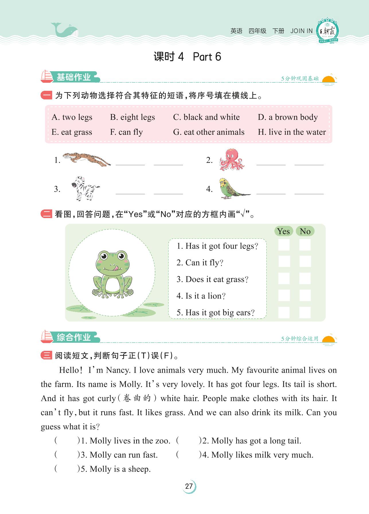 2023下册四年级英语剑桥版 Unit 3—课时 4 Part 6