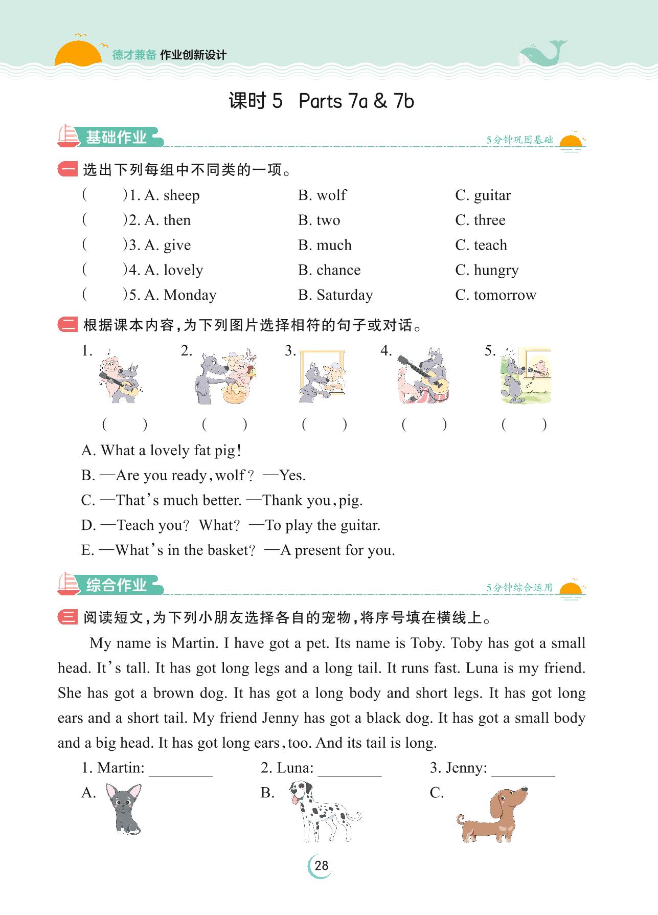 2023下册四年级英语剑桥版 Unit 3—课时 5 Parts 7a & 7b