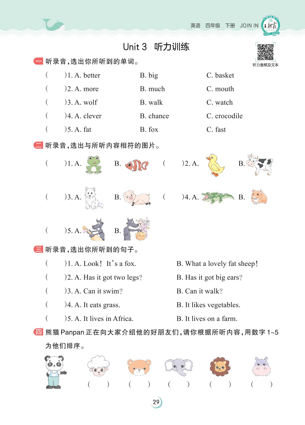 2023下册四年级英语剑桥版 Unit 3 听力训练