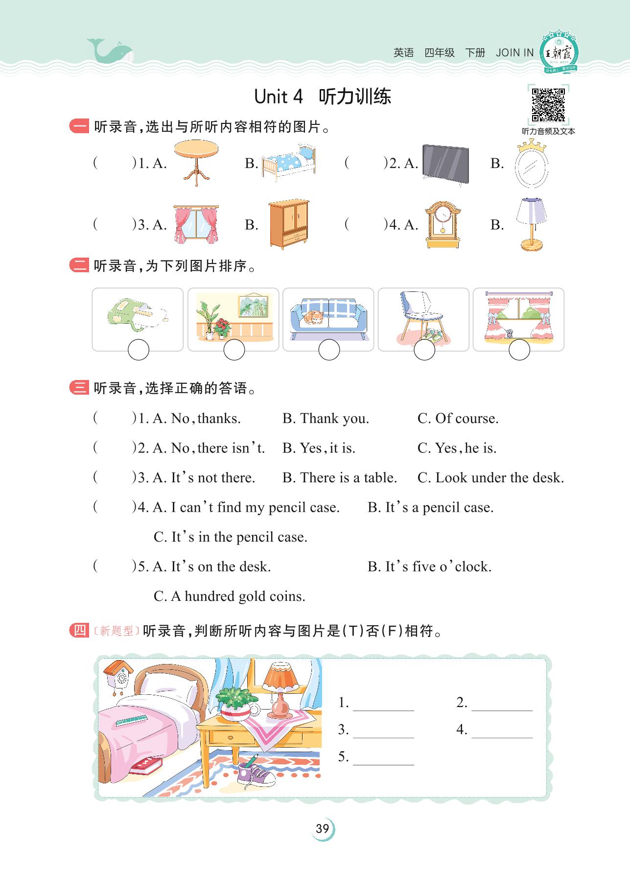 2023下册四年级英语剑桥版 Unit 4 听力训练