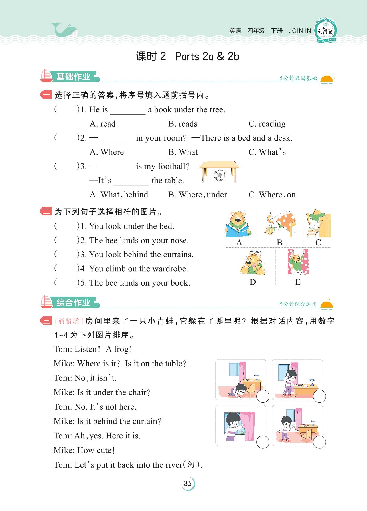 2023下册四年级英语剑桥版 Unit 4—课时 2 Parts 2a & 2b