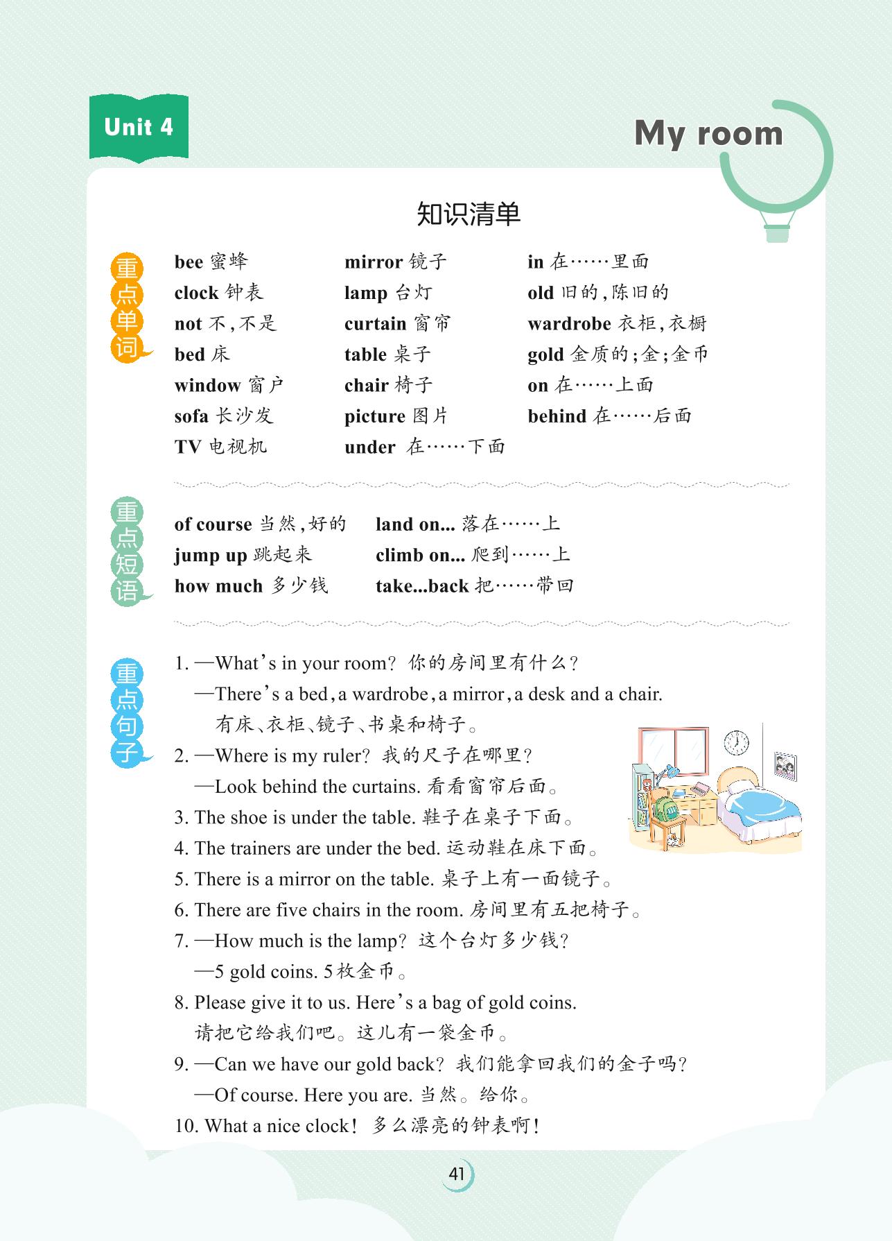 2023下册四年级英语剑桥版 Unit 4 知识清单