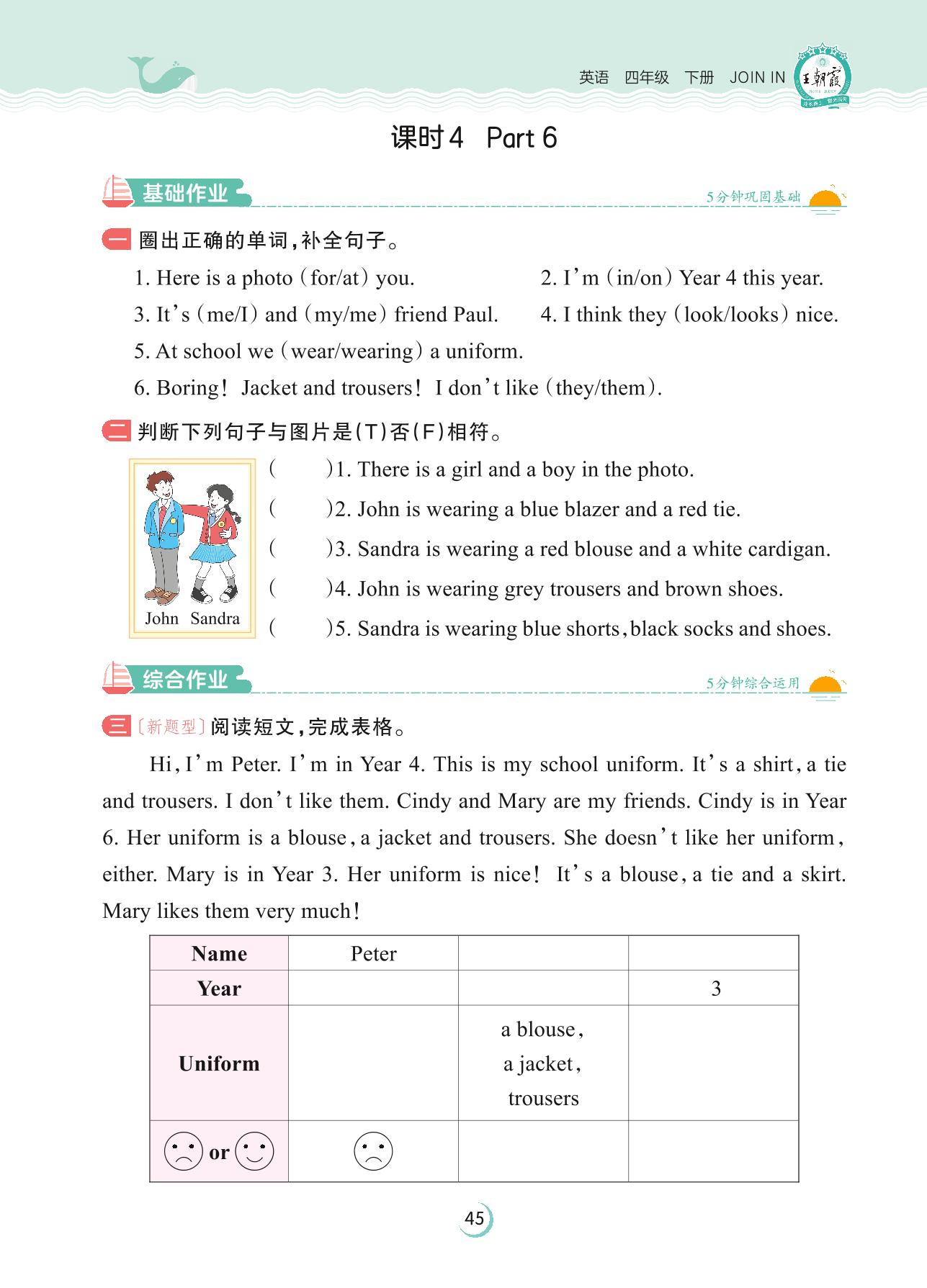 2023下册四年级英语剑桥版 Unit 5—课时 4 Part 6