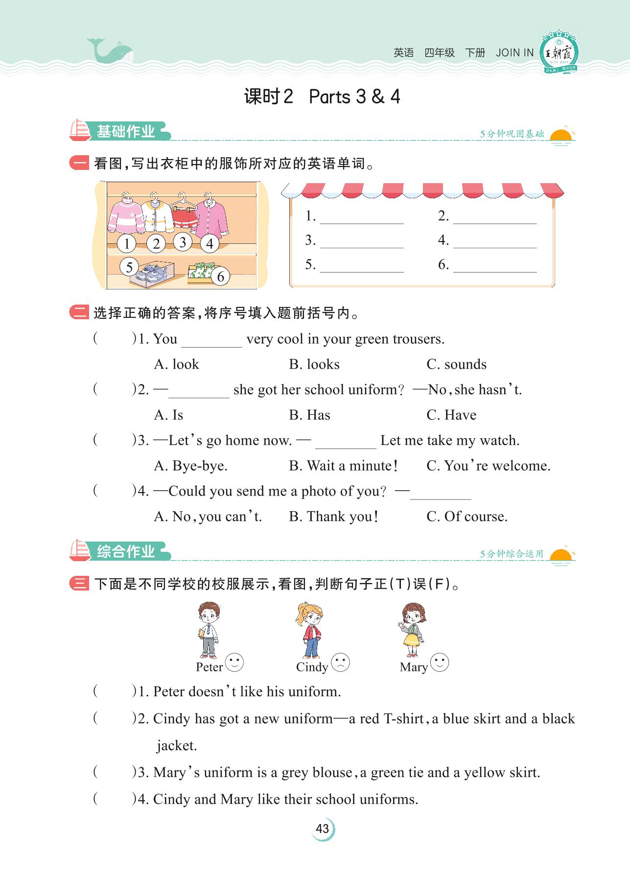 2023下册四年级英语剑桥版 Unit 5—课时 2 Parts 3 & 4