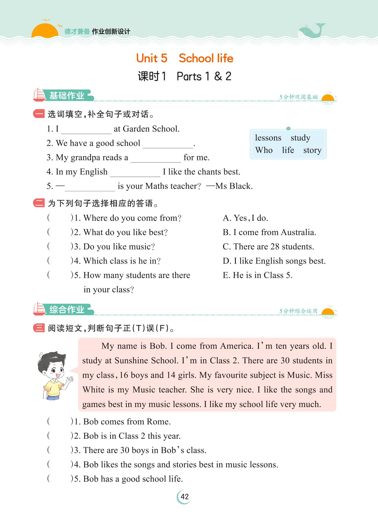 2023下册四年级英语剑桥版 Unit 5—课时 1 Parts 1 & 2