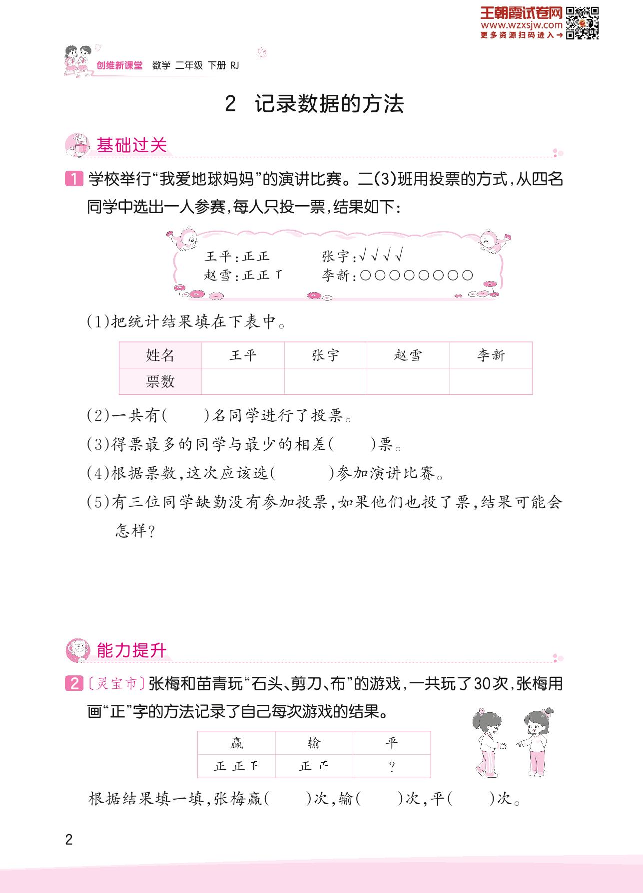 2023下册二年级数学人教版 一 数据收集和整理——2 记录数据的方法