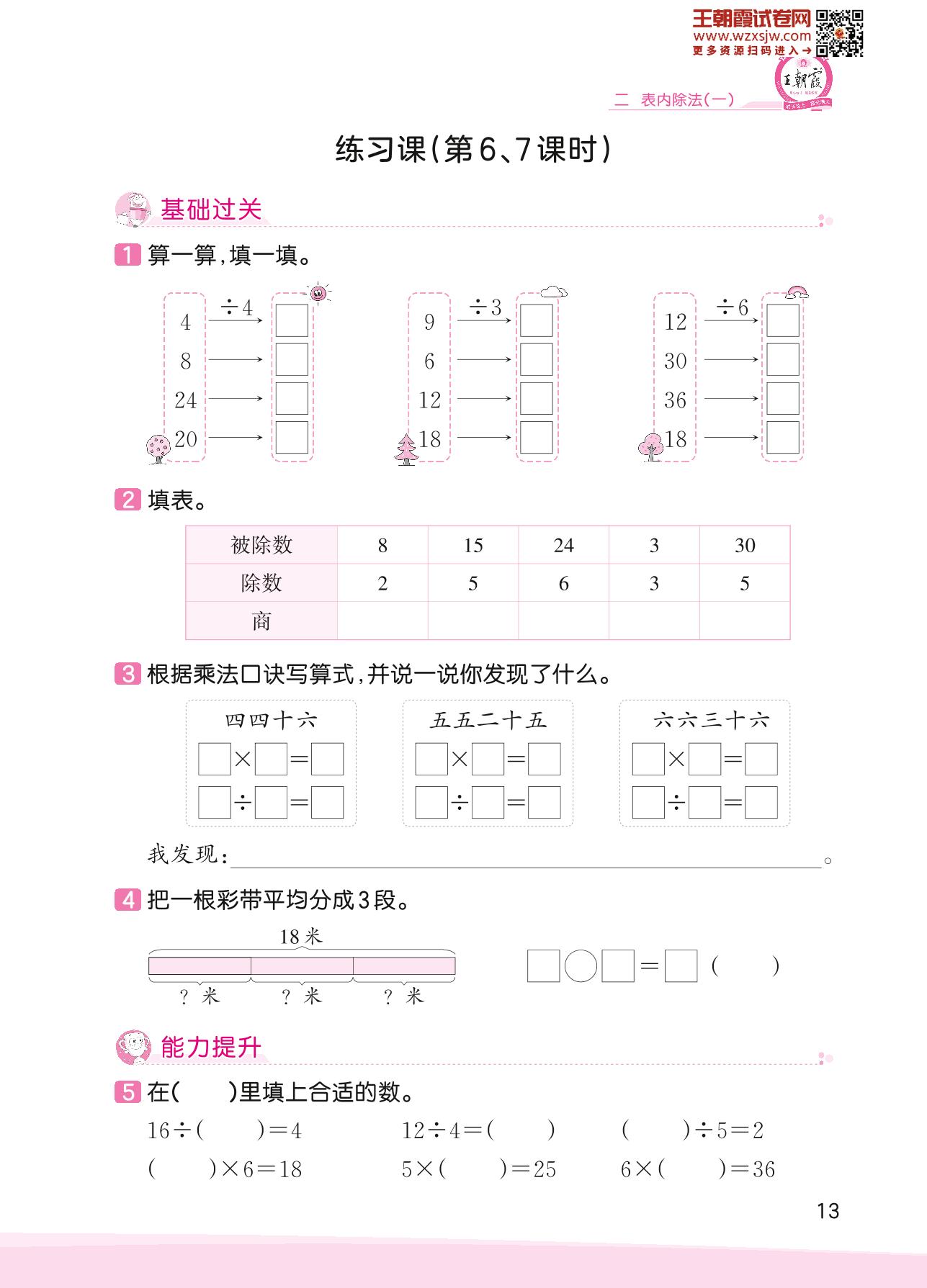 2023下册二年级数学人教版 二 表内除法(一)——练习课(第6、7课时)