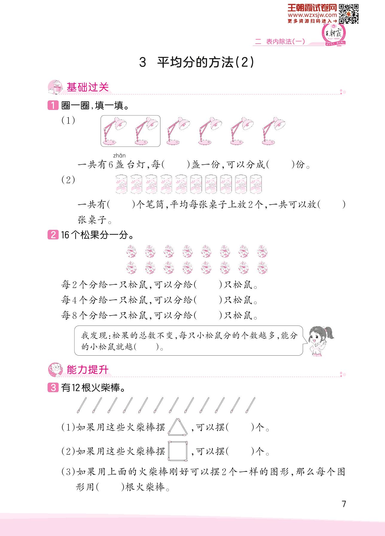 2023下册二年级数学人教版 二 表内除法(一)——3 平均分的方法(2)