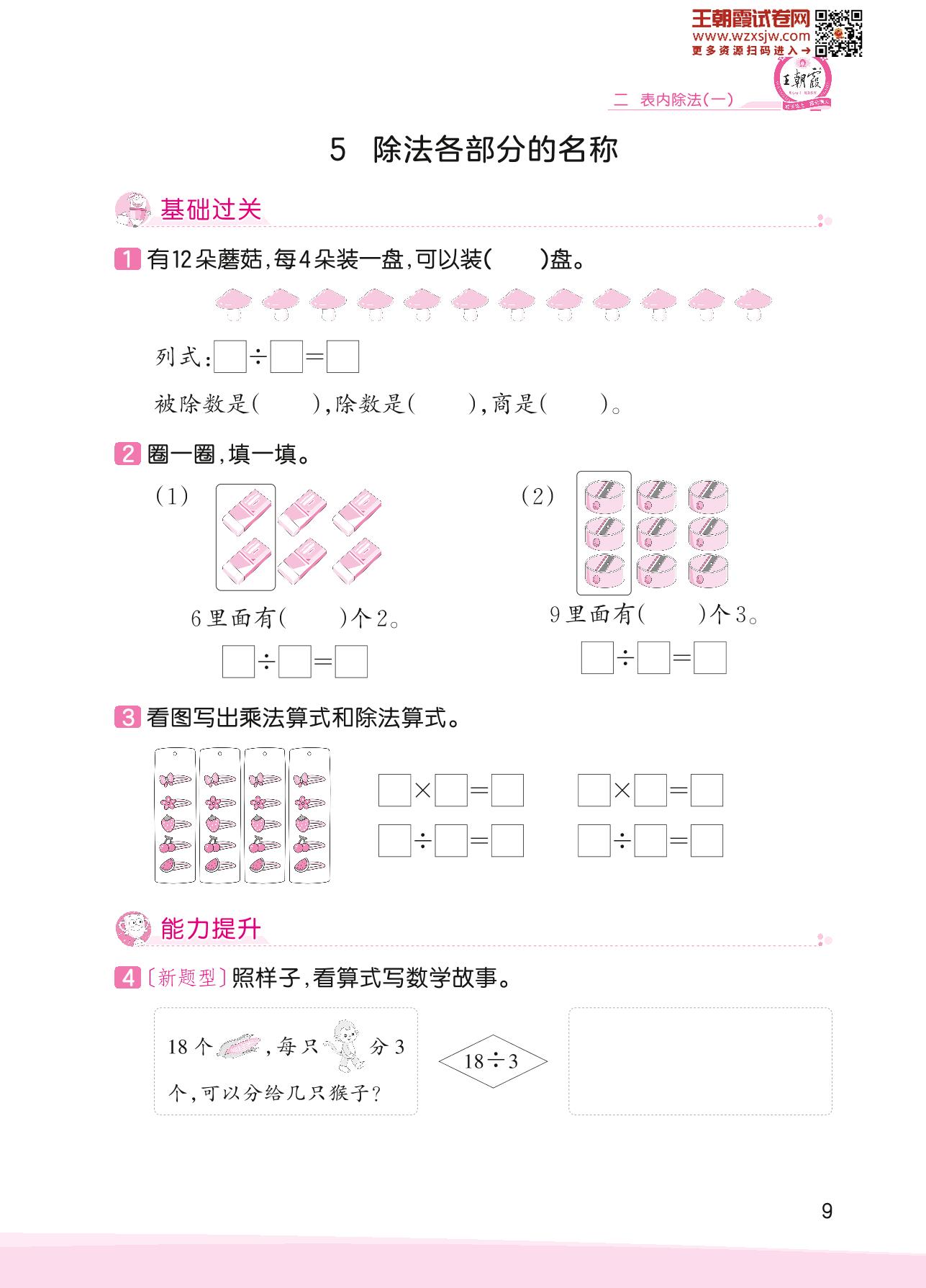 2023下册二年级数学人教版 二 表内除法(一)——5 除法各部分的名称