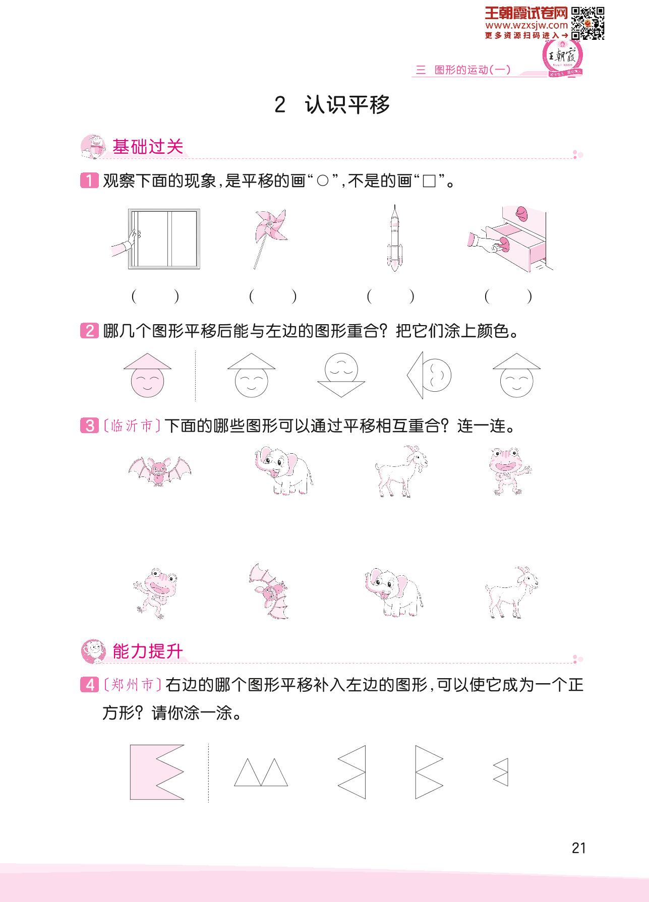 2023下册二年级数学人教版 三 图形的运动(一)——2 认识平移