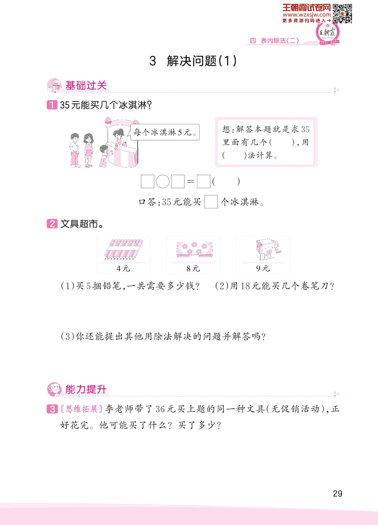 2023下册二年级数学人教版 四 表内除法(二)——3 解决问题(1)