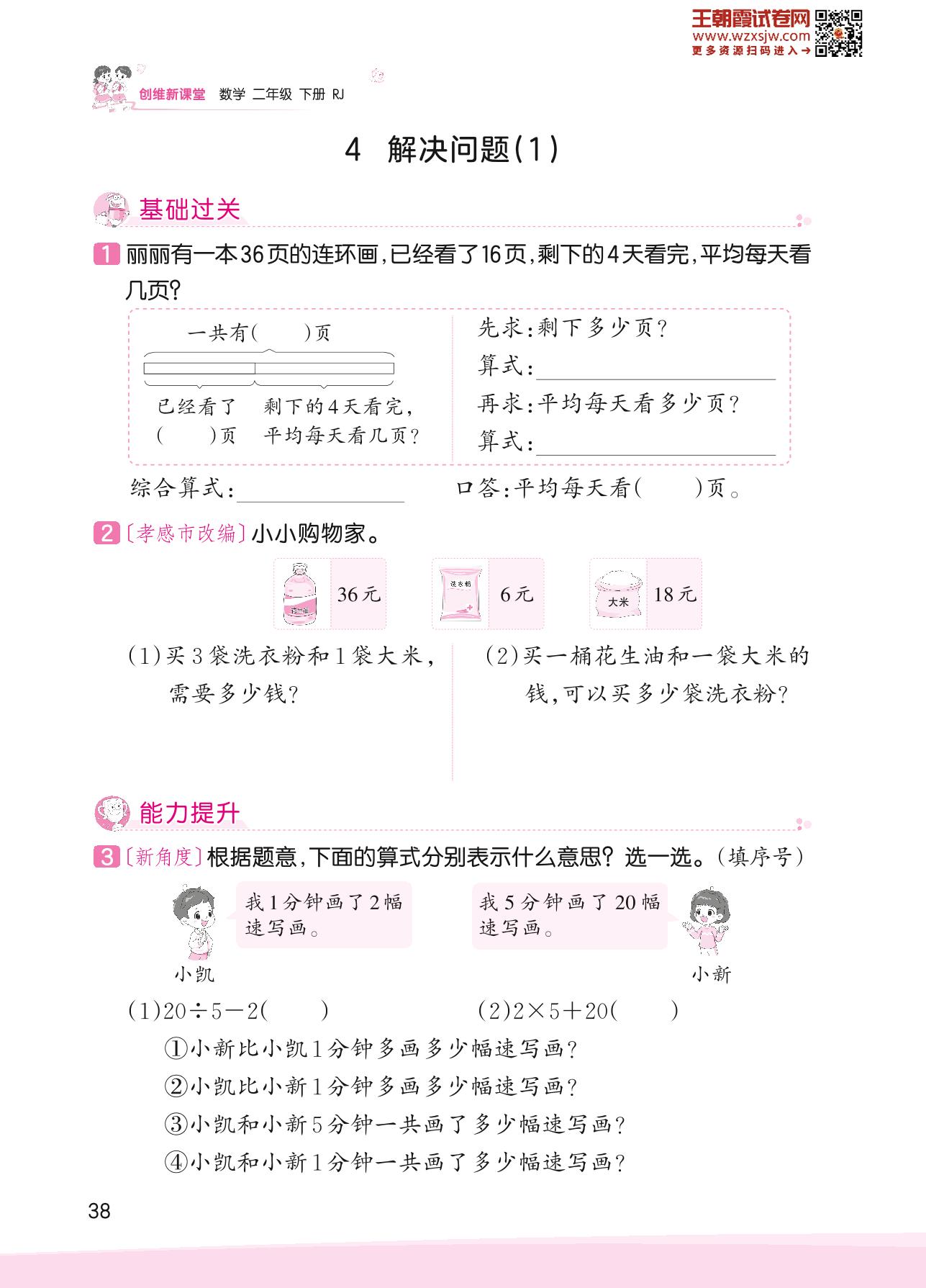 2023下册二年级数学人教版 五 混合运算——4 解决问题(1)