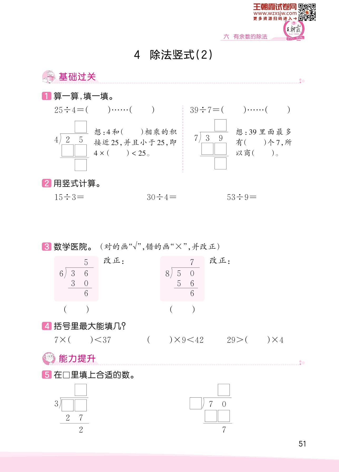 2023下册二年级数学人教版 六 有余数的除法——4 除法竖式(2)