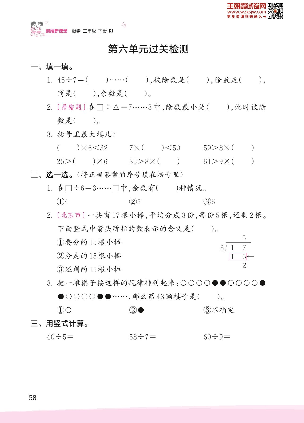 2023下册二年级数学人教版 第六单元过关检测