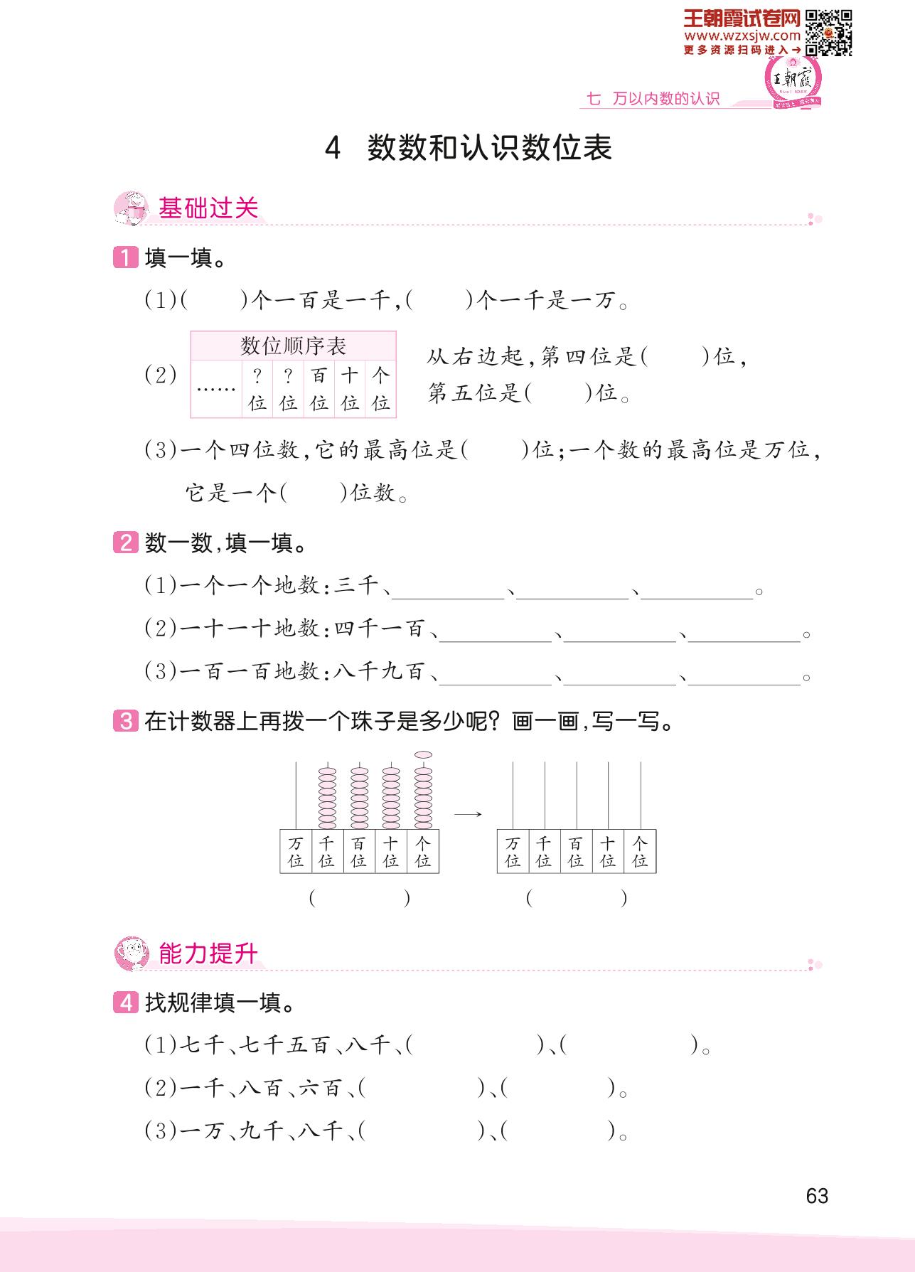 2023下册二年级数学人教版 七 万以内数的认识——4 数数和认识数位表