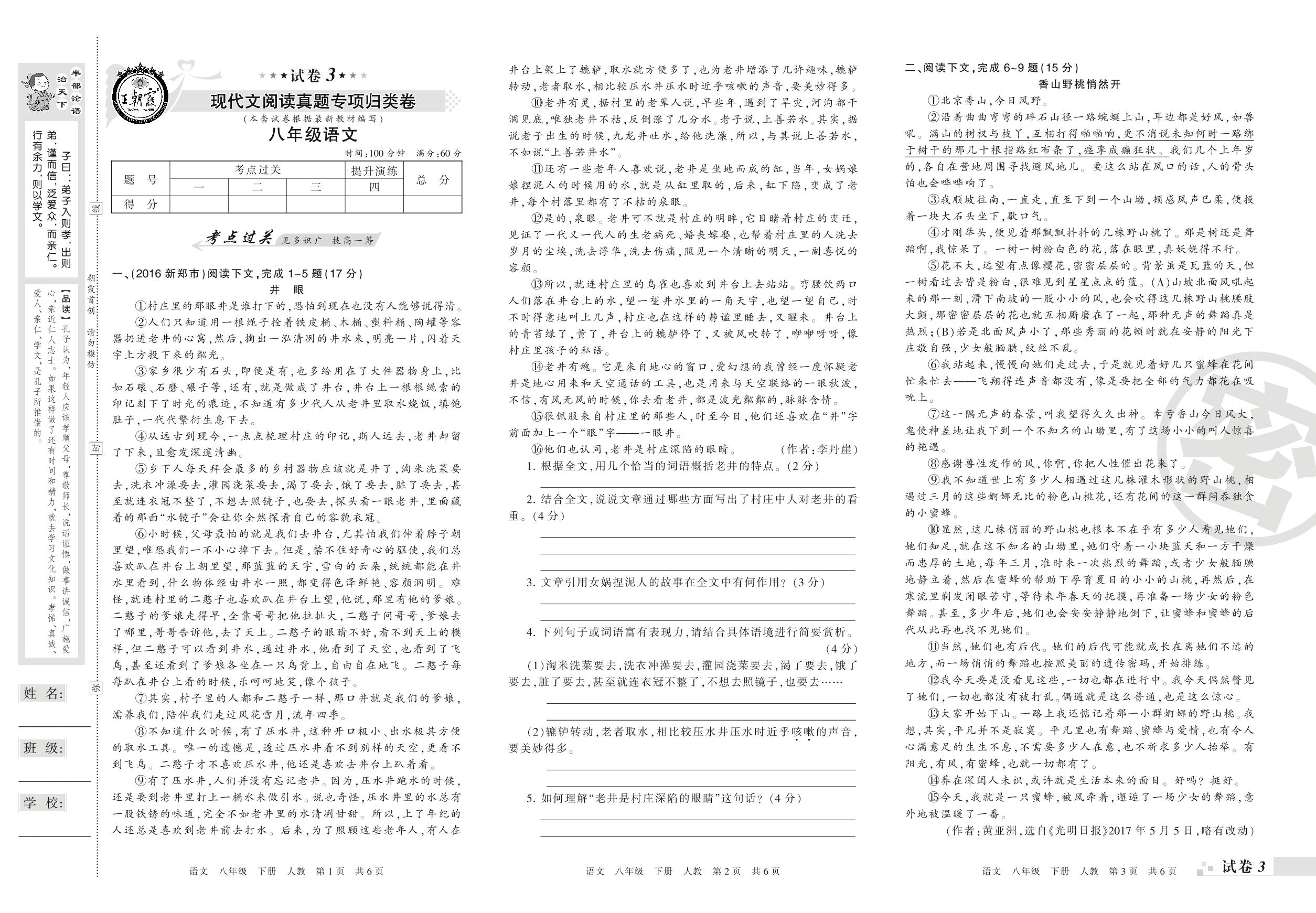 王朝霞期末专项卷——现代文阅读真题专项归类卷八年级下册语文(人教版)_R210802183620【3】