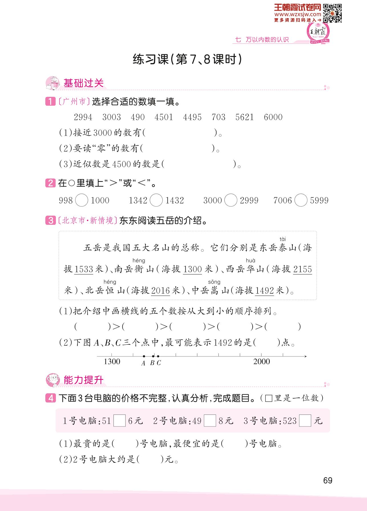 2023下册二年级数学人教版 七 万以内数的认识——练习课(第7、8课时)