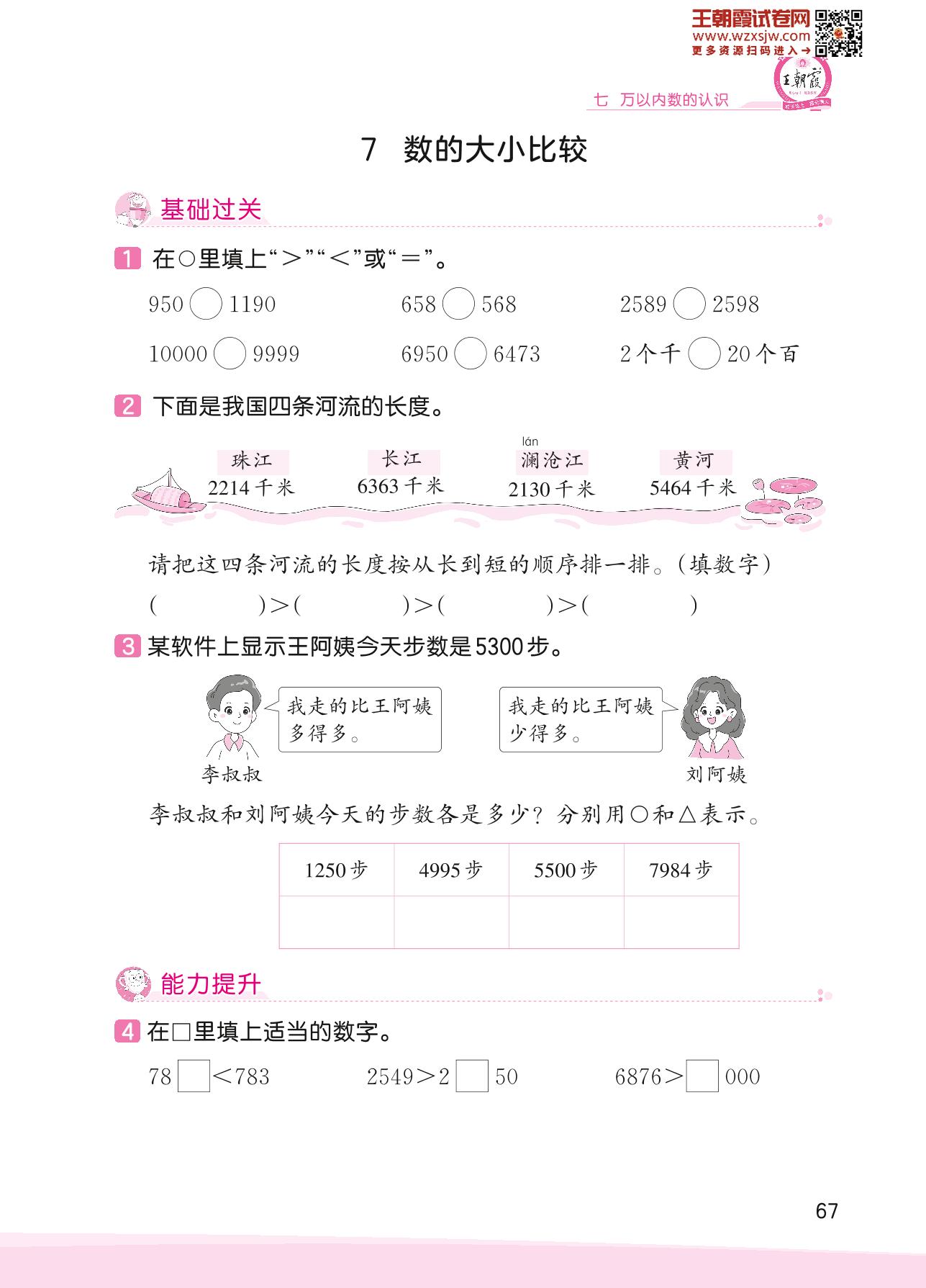 2023下册二年级数学人教版 七 万以内数的认识——7 数的大小比较