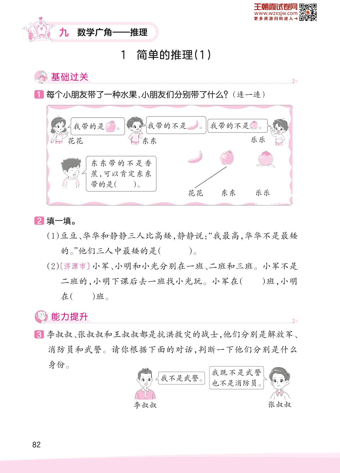 2023下册二年级数学人教版 九 数学广角 推理——1 简单的推理(1)