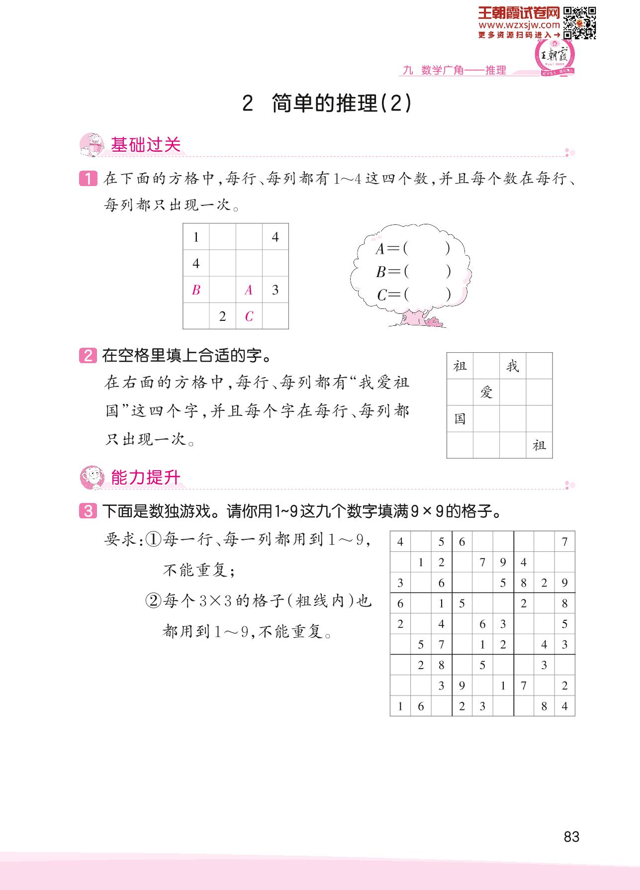 2023下册二年级数学人教版 九 数学广角 推理——2 简单的推理(2)