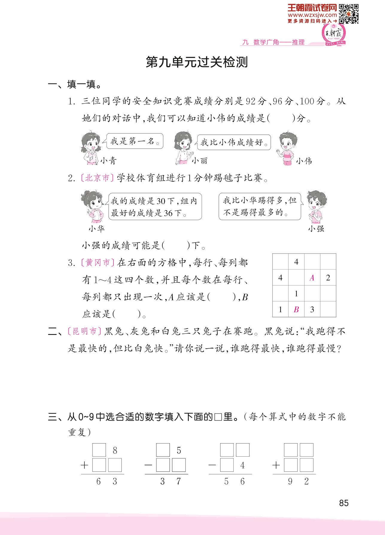 2023下册二年级数学人教版 第九单元过关检测