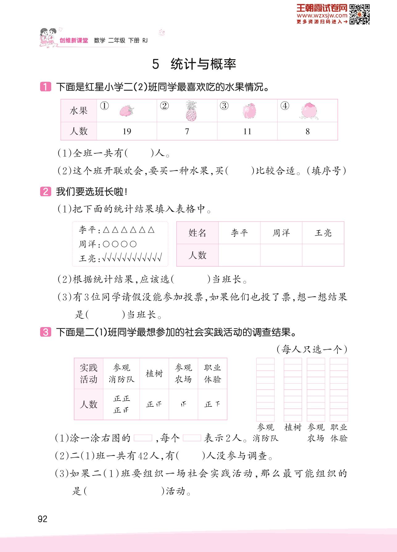 2023下册二年级数学人教版 十 总复习——5 统计与概率