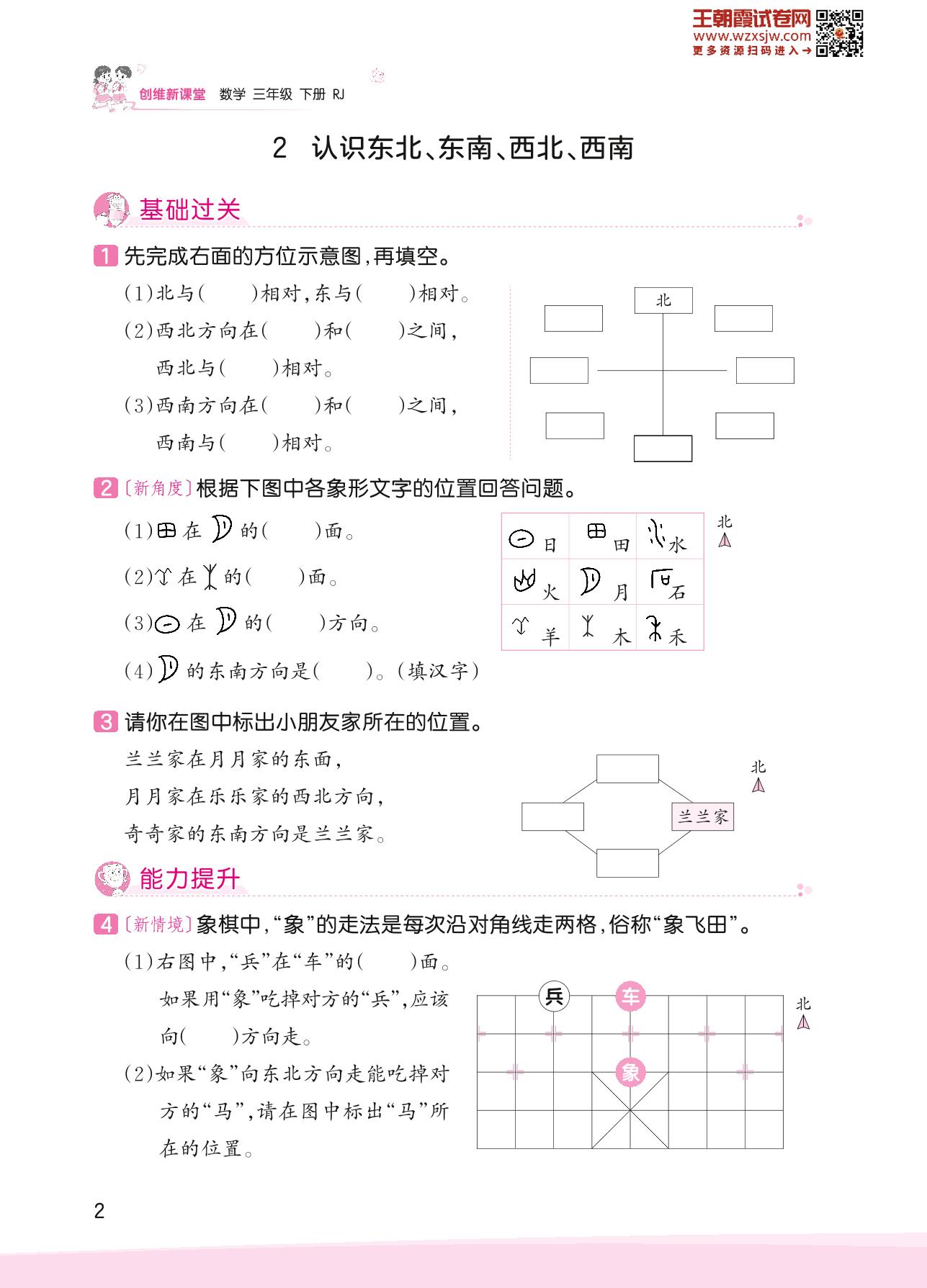2023下册三年级数学人教版 一 位置与方向(一)——2 认识东北、东南、西北、西南