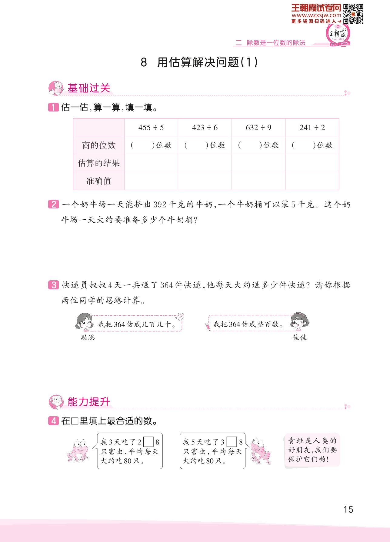 2023下册三年级数学人教版 二 除数是一位数的除法——8 用估算解决问题(1)