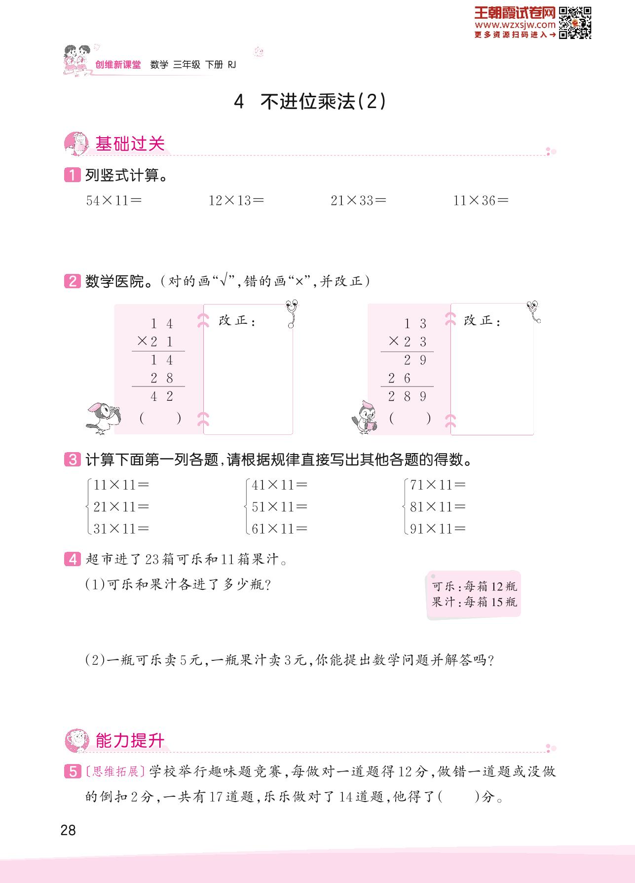 2023下册三年级数学人教版 四 两位数乘两位数——4 不进位乘法(2)