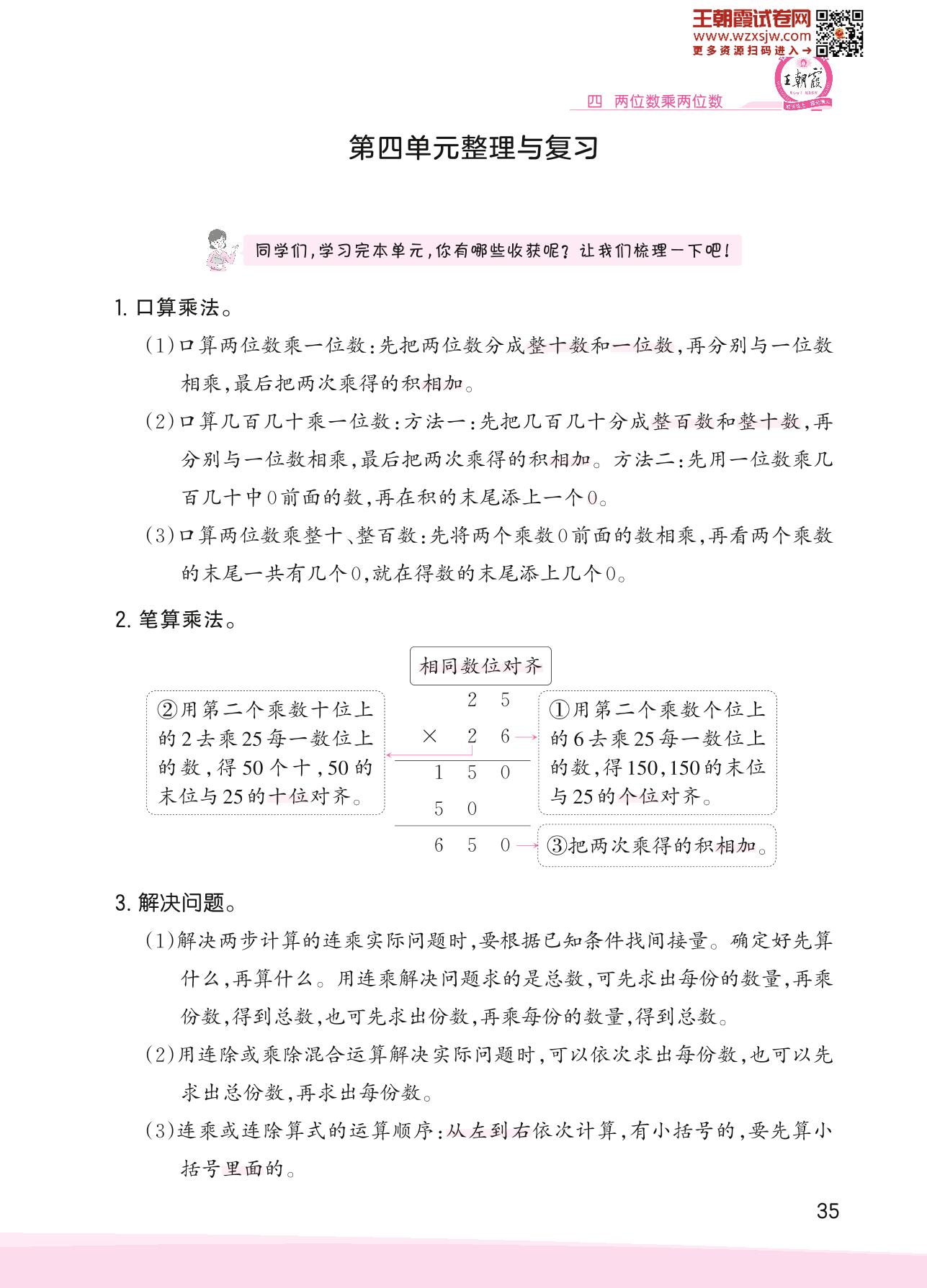 2023下册三年级数学人教版 第四单元整理与复习