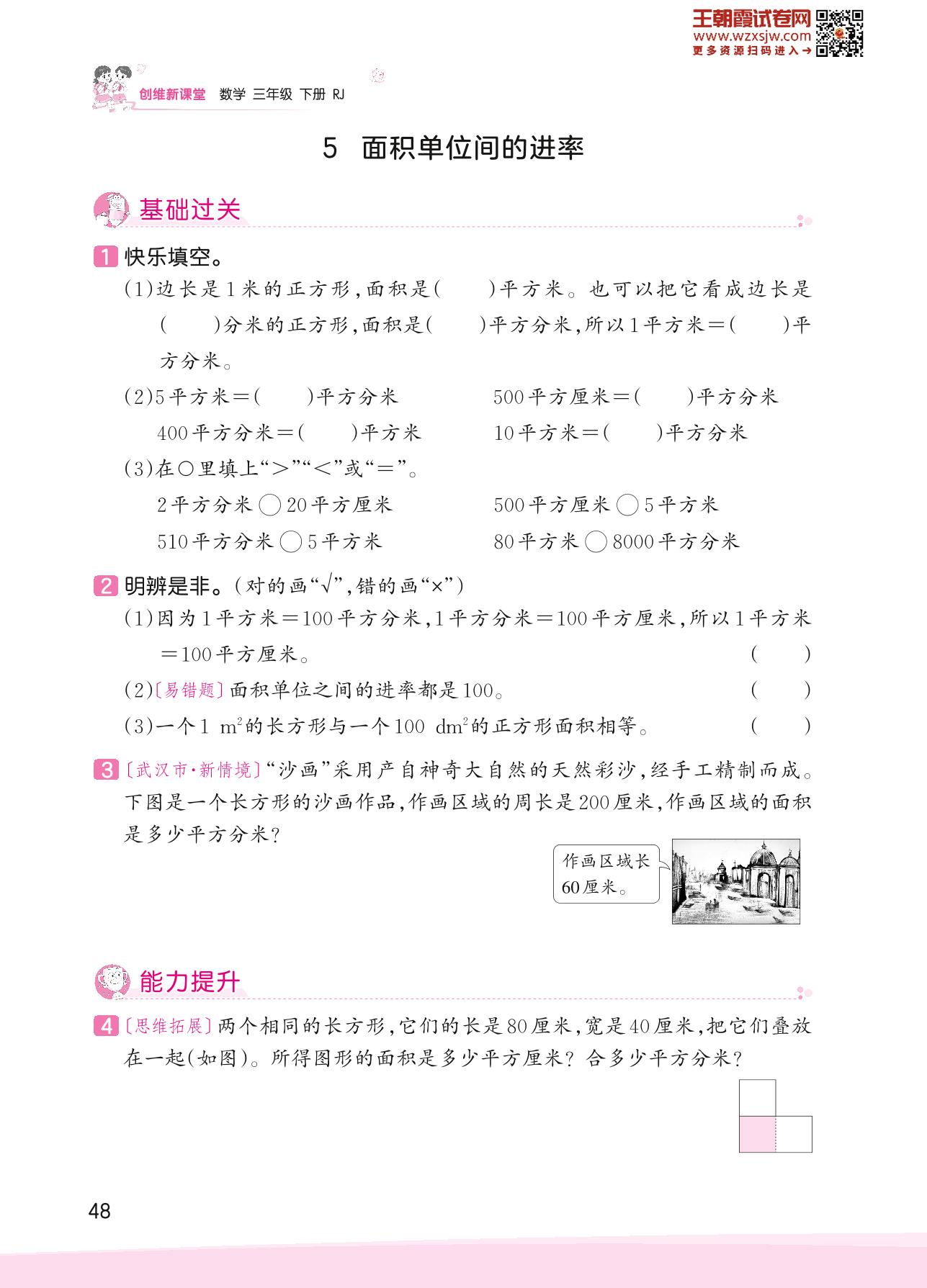 2023下册三年级数学人教版 五 面积——5 面积单位间的进率