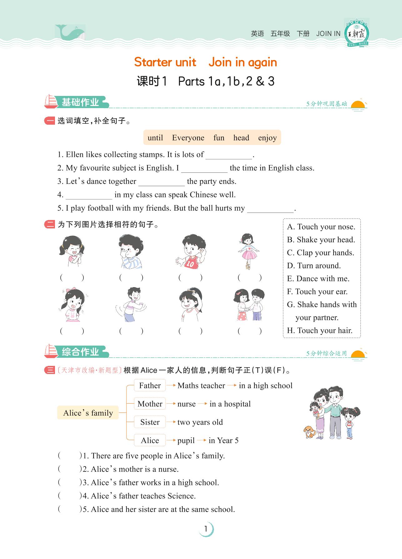 2023下册五年级英语剑桥版 Starter unit—课时 1 Parts 1a,1b,2 & 3