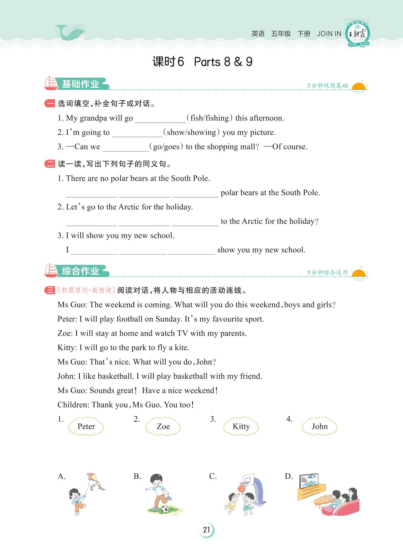 2023下册五年级英语剑桥版 Unit 2—课时 6 Parts 8 & 9