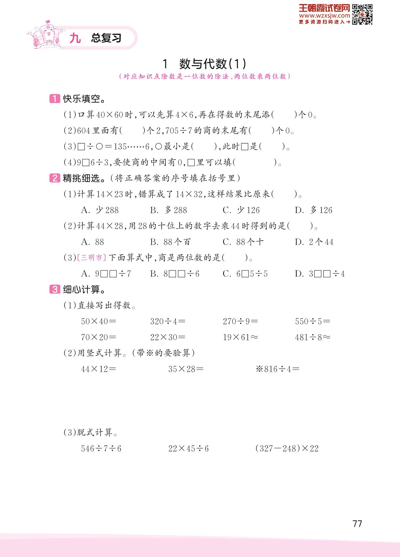 2023下册三年级数学人教版 九 总复习——1 数与代数(1)