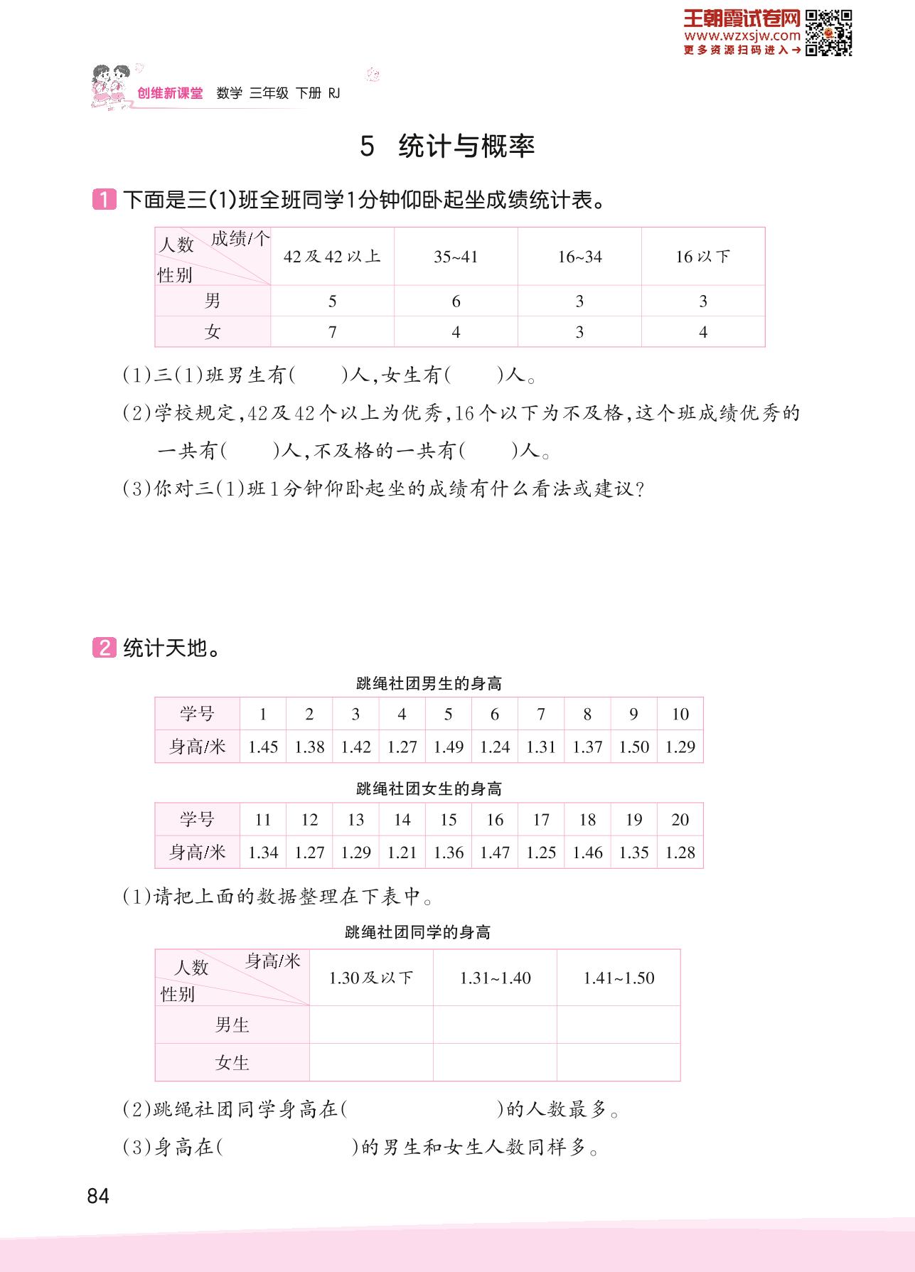 2023下册三年级数学人教版 九 总复习——5 统计与概率