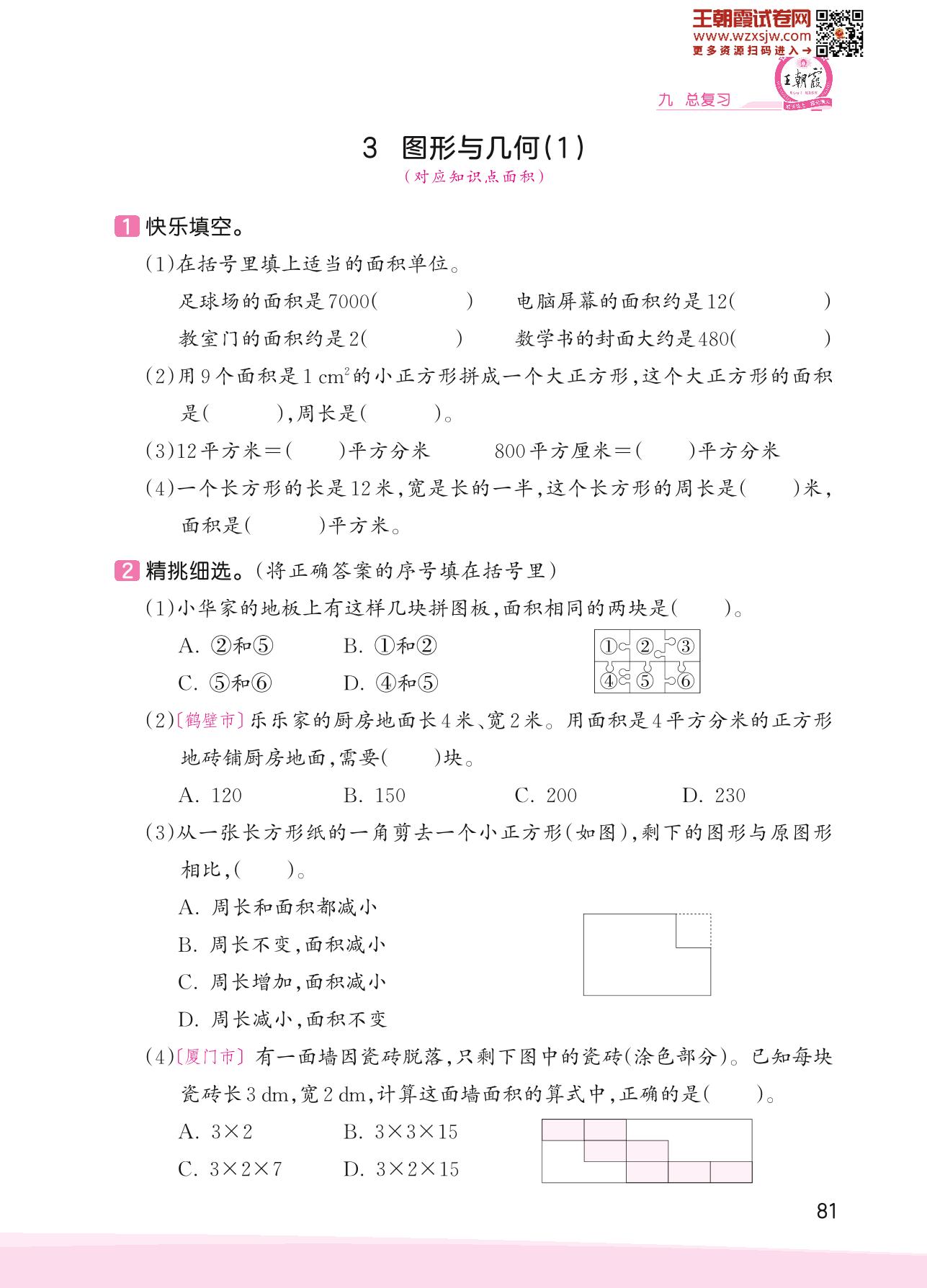 2023下册三年级数学人教版 九 总复习——3 图形与几何(1)