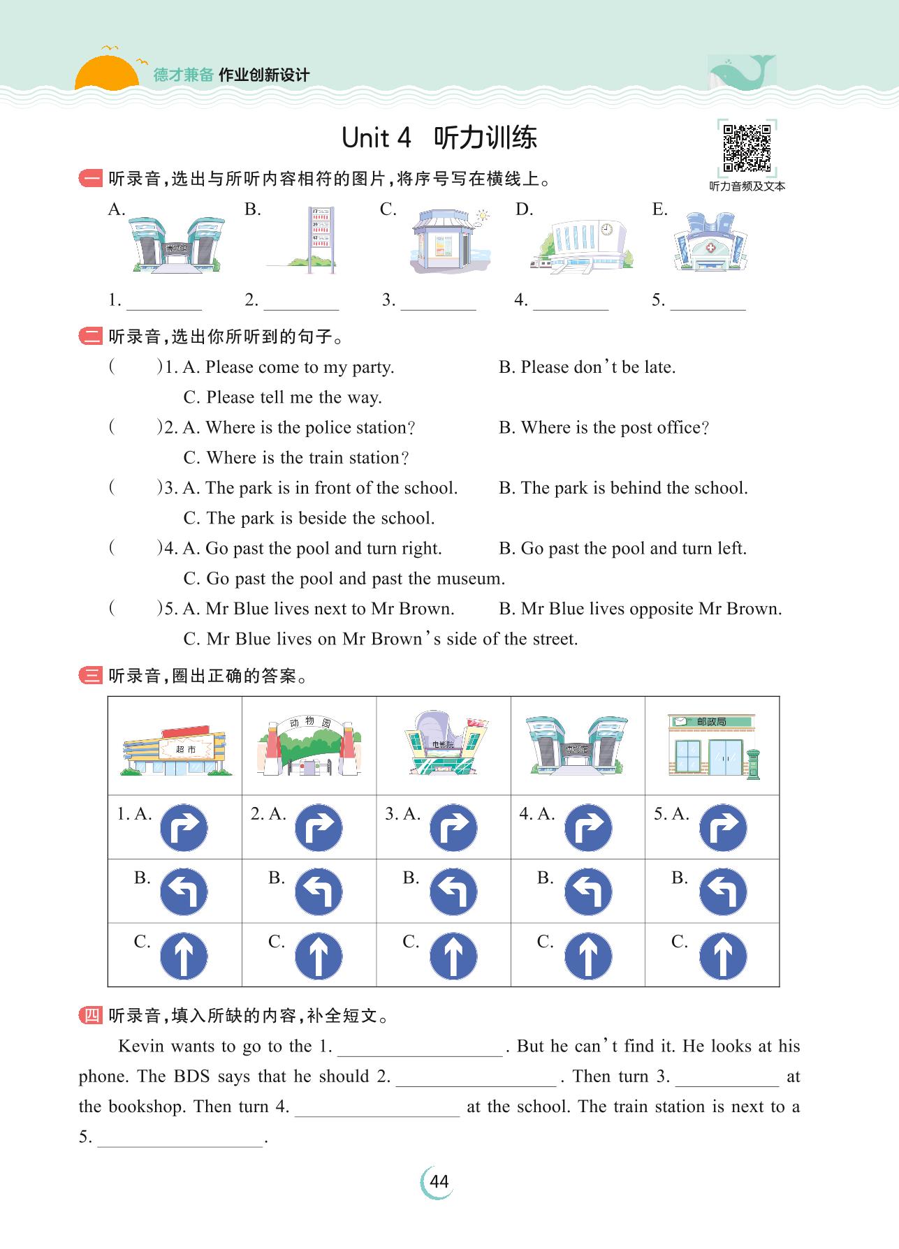 2023下册五年级英语剑桥版 Unit 4 听力训练