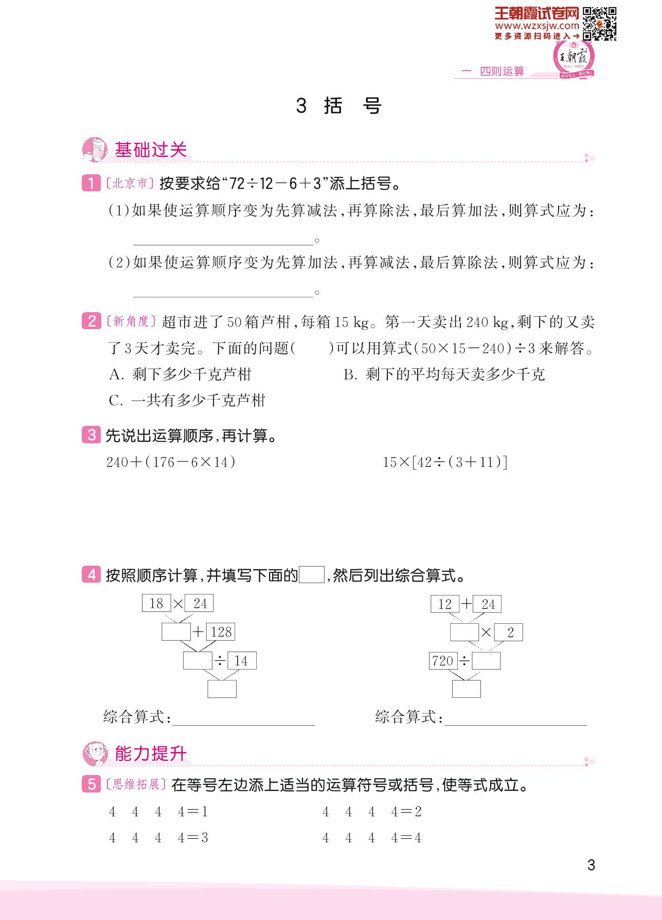 2023下册四年级数学人教版 一 四则运算——3 括号