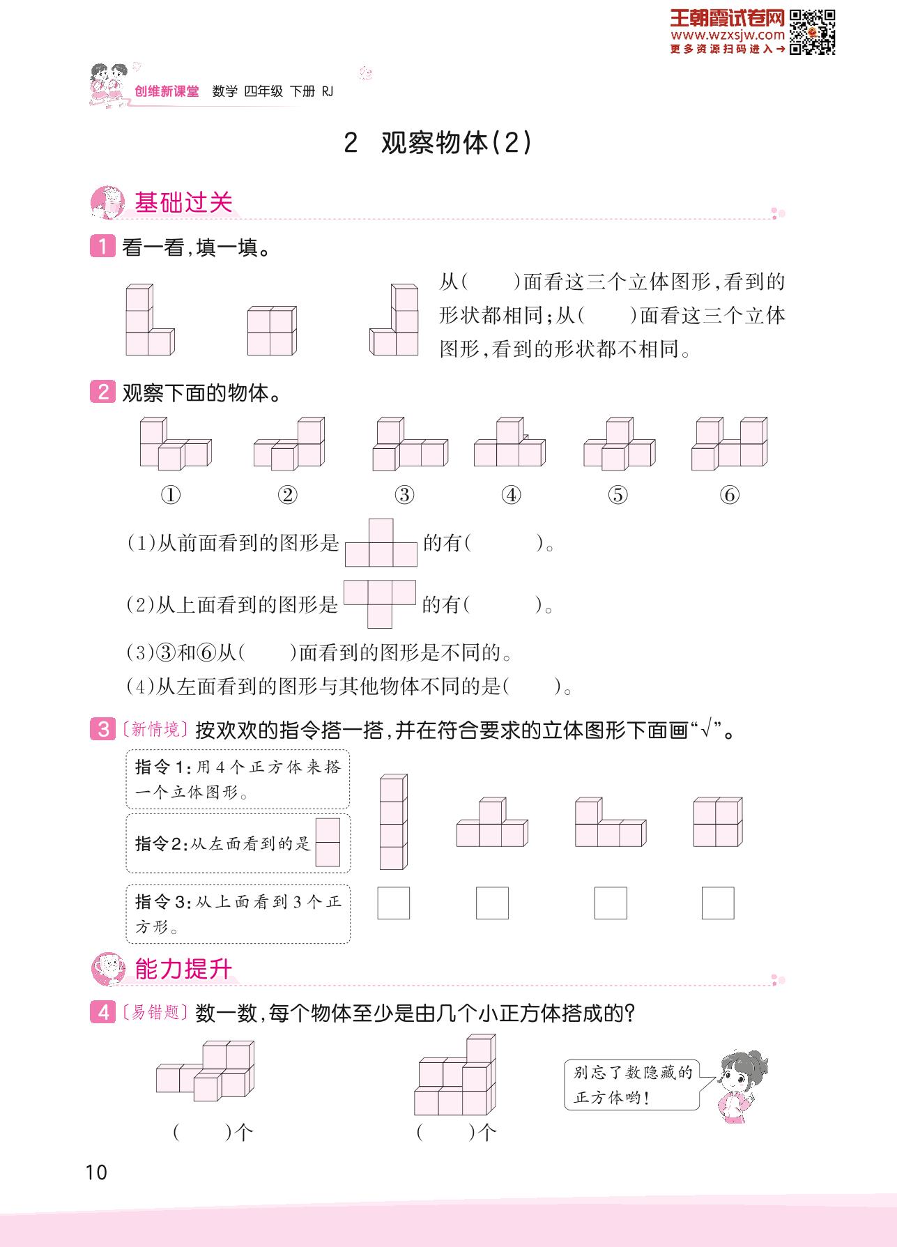 2023下册四年级数学人教版 二 观察物体(二)——2 观察物体(2)