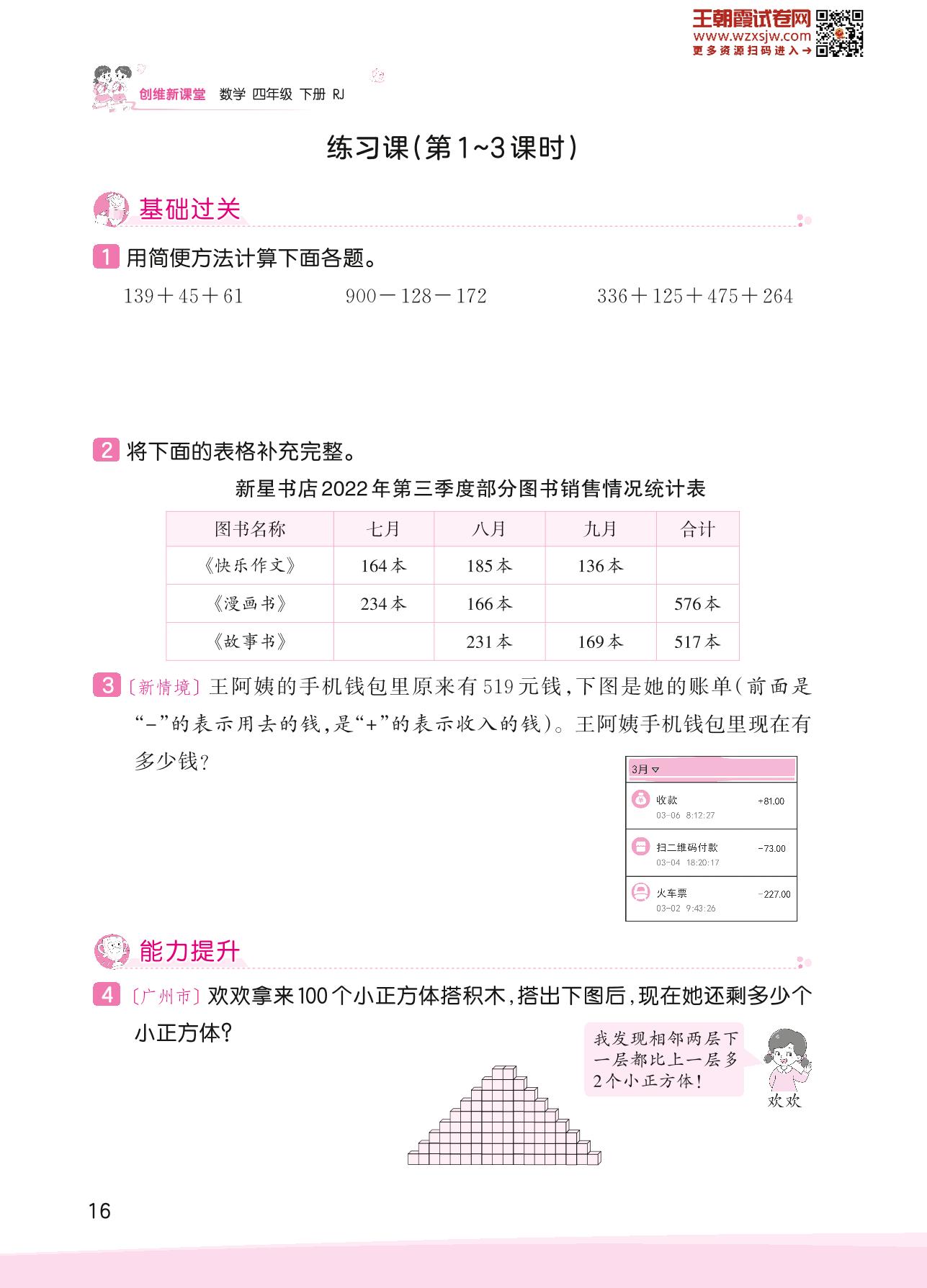 2023下册四年级数学人教版 三 运算律——练习课(第1~3课时)