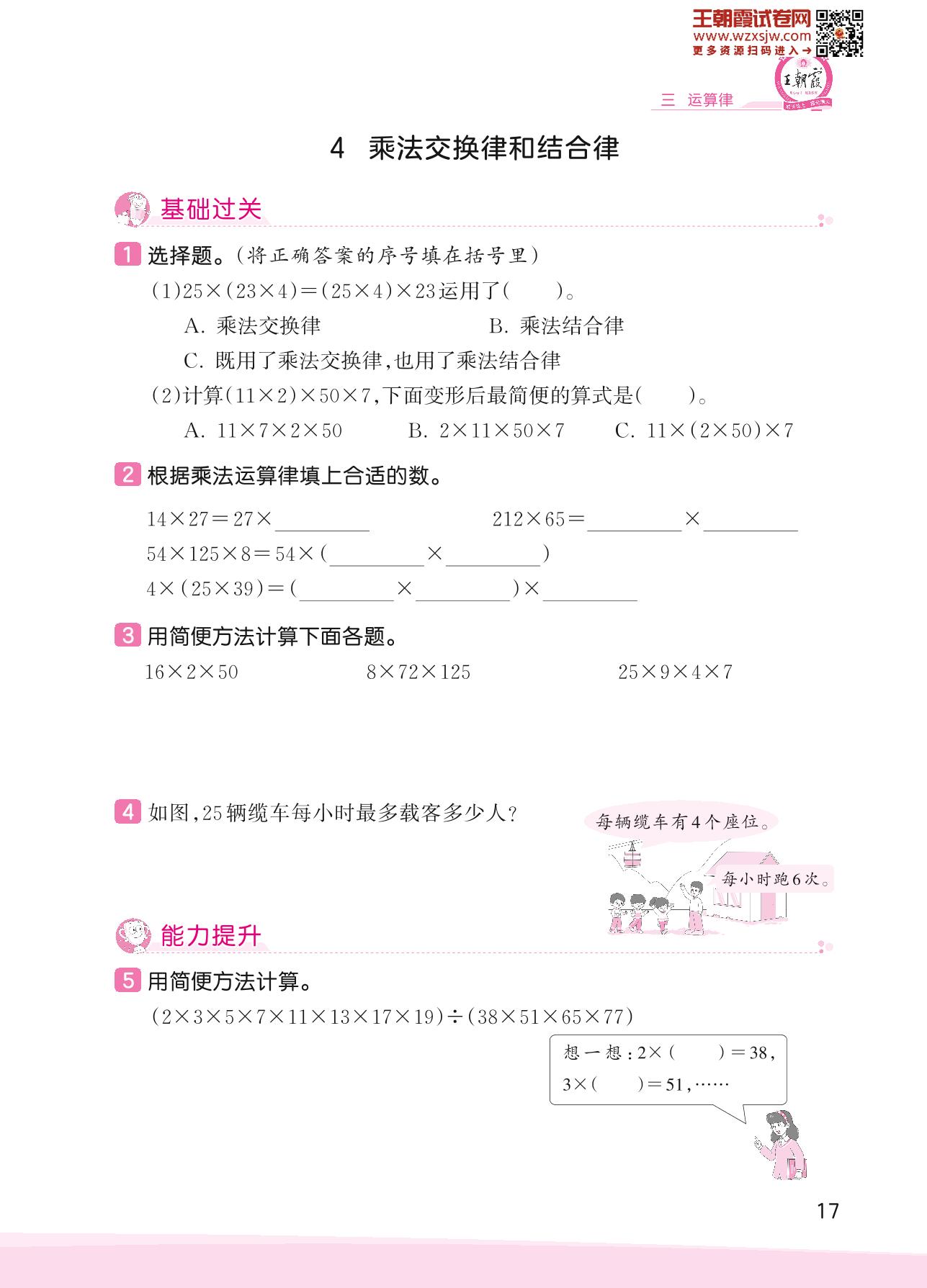 2023下册四年级数学人教版 三 运算律——4 乘法交换律和结合律