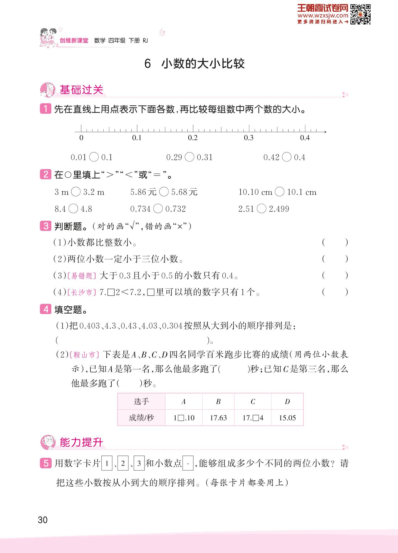 2023下册四年级数学人教版 四 小数的意义和性质——6 小数的大小比较