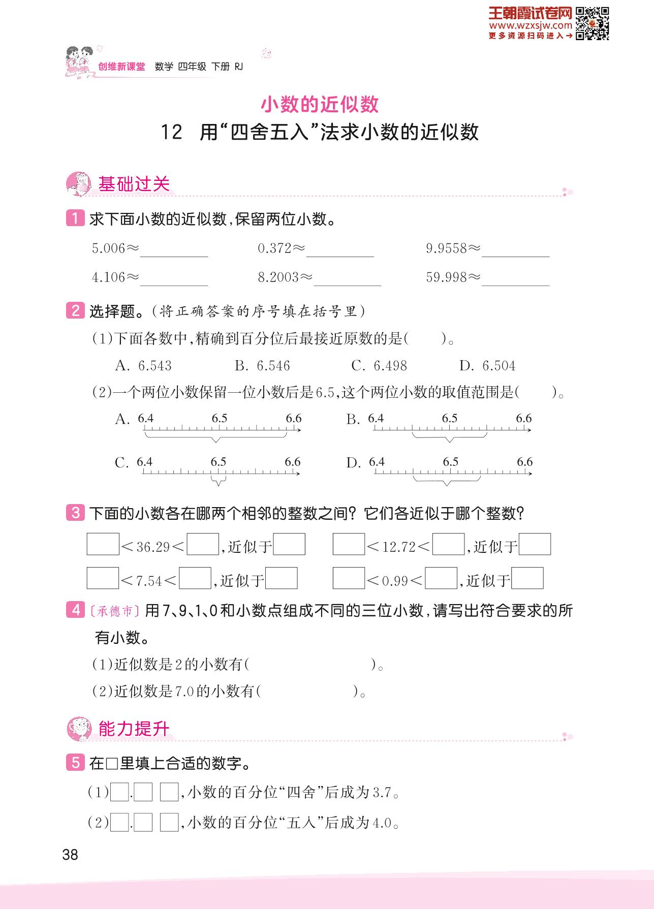 2023下册四年级数学人教版 四 小数的意义和性质——11 用“四舍五入”法求小数的近似数