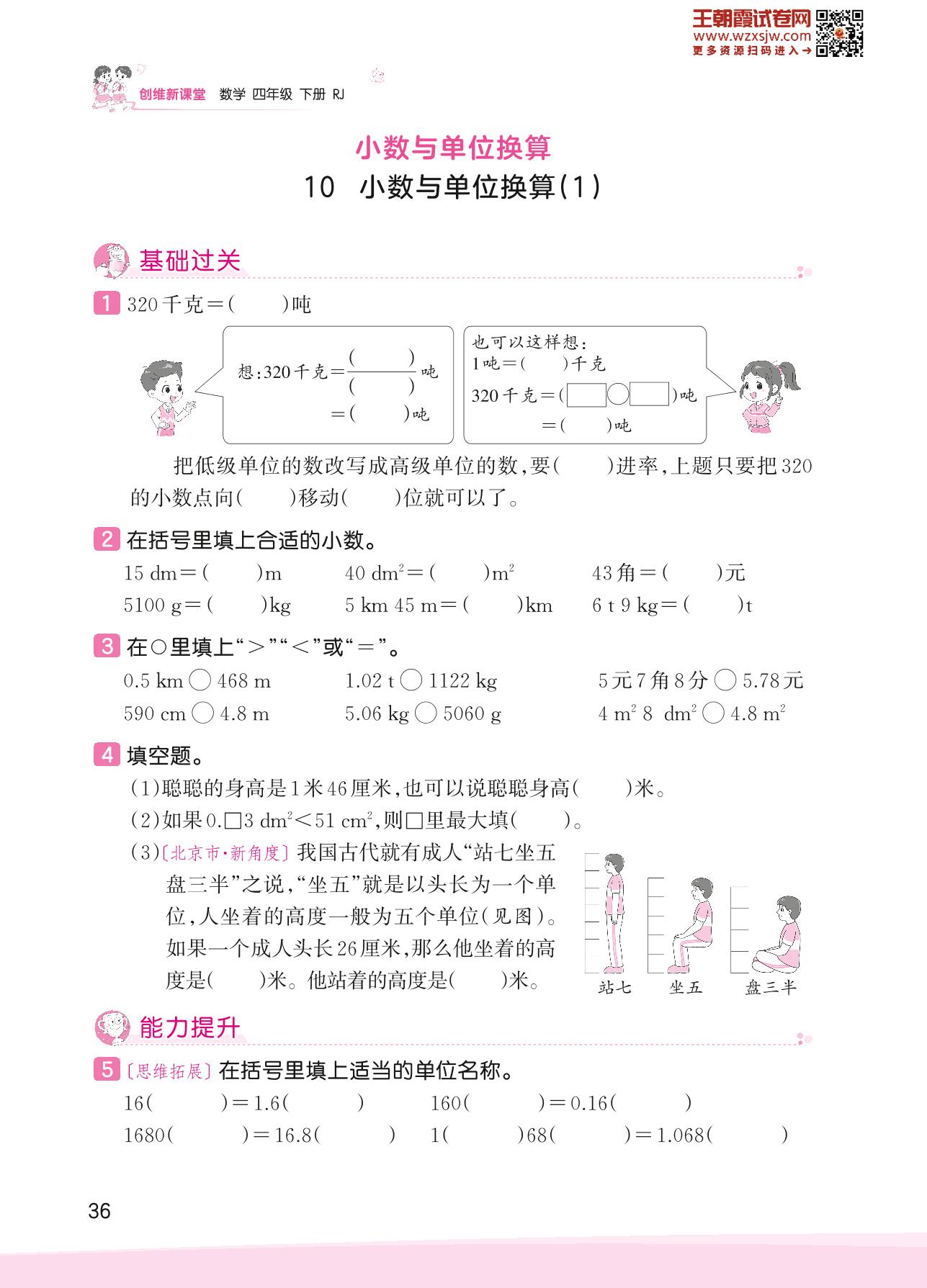 2023下册四年级数学人教版 四 小数的意义和性质——10 小数与单位换算(2)