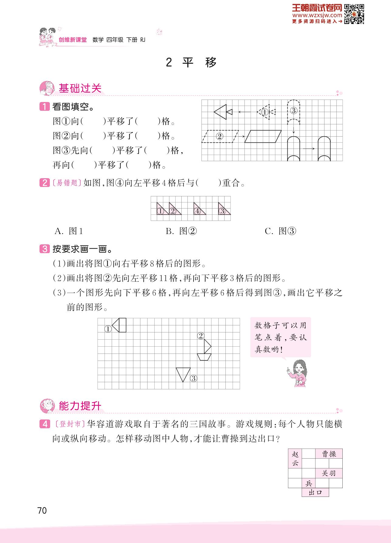 2023下册四年级数学人教版 七 图形的运动(二)——2 平移