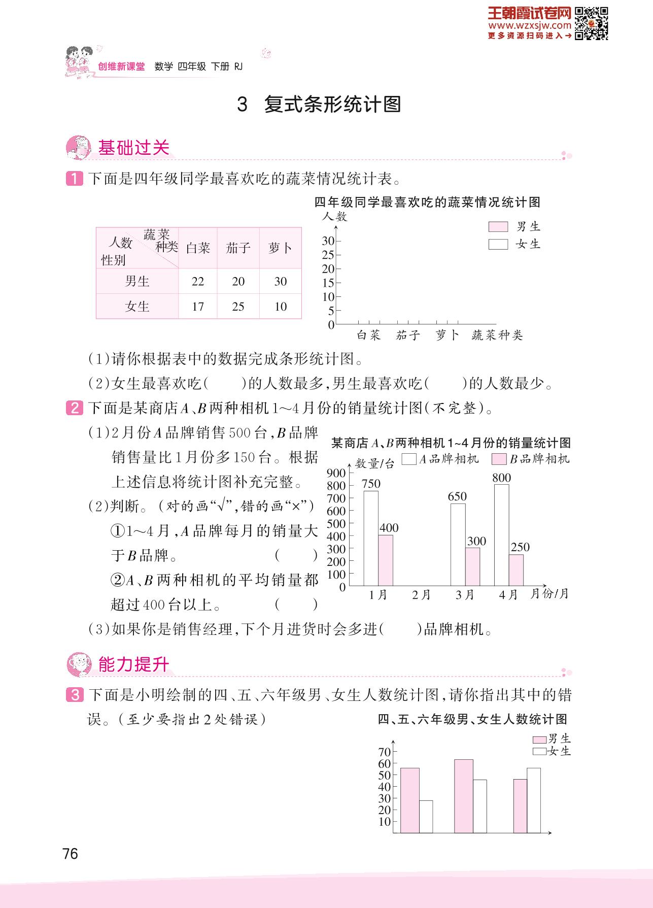 2023下册四年级数学人教版 八 平均数与条形统计图——3 复式条形统计图