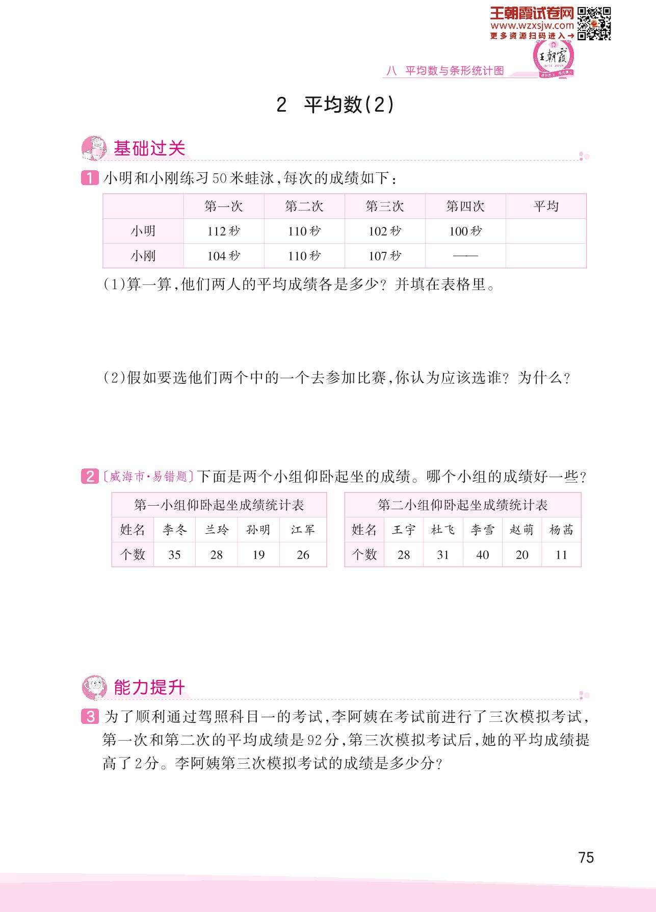2023下册四年级数学人教版 八 平均数与条形统计图——2 平均数(2)