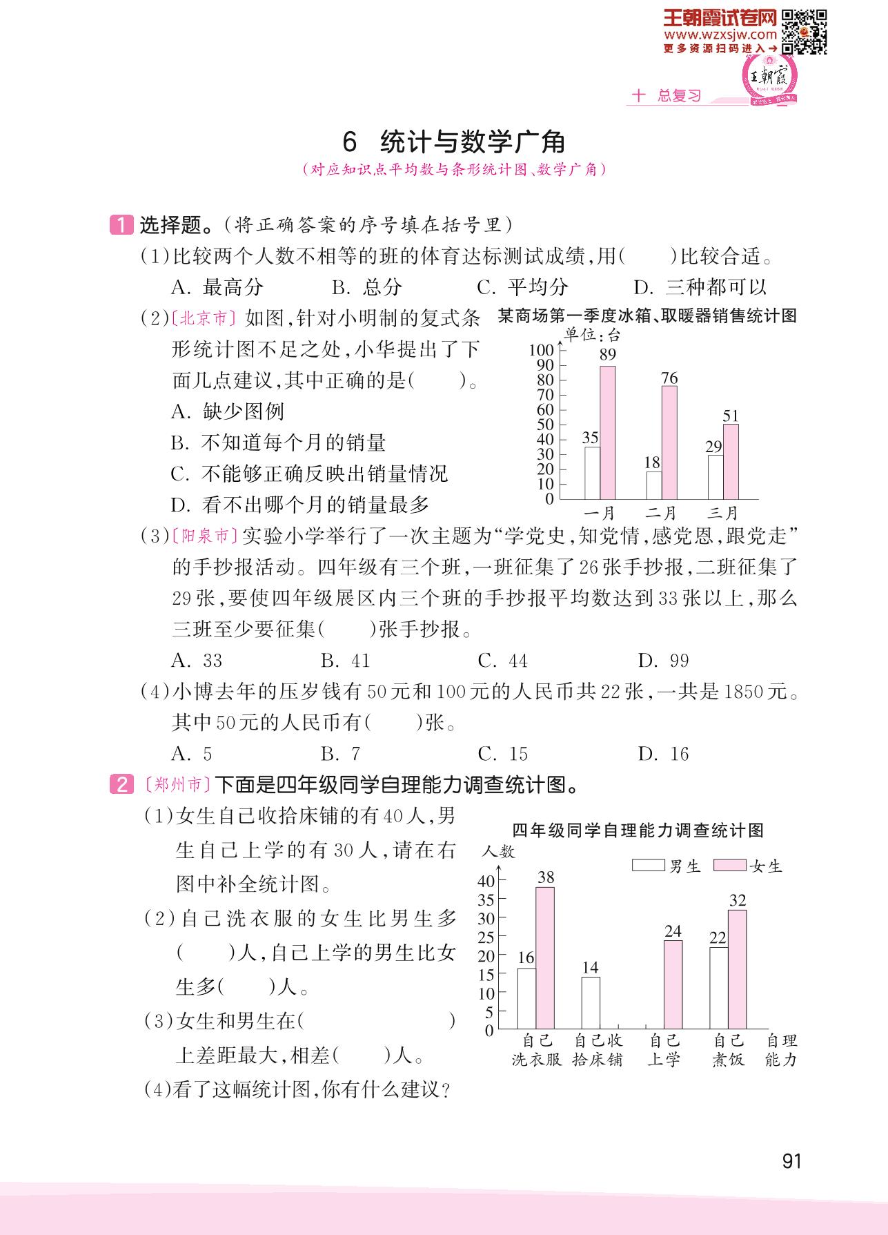 2023下册四年级数学人教版 十 总复习——6 统计与数学广角