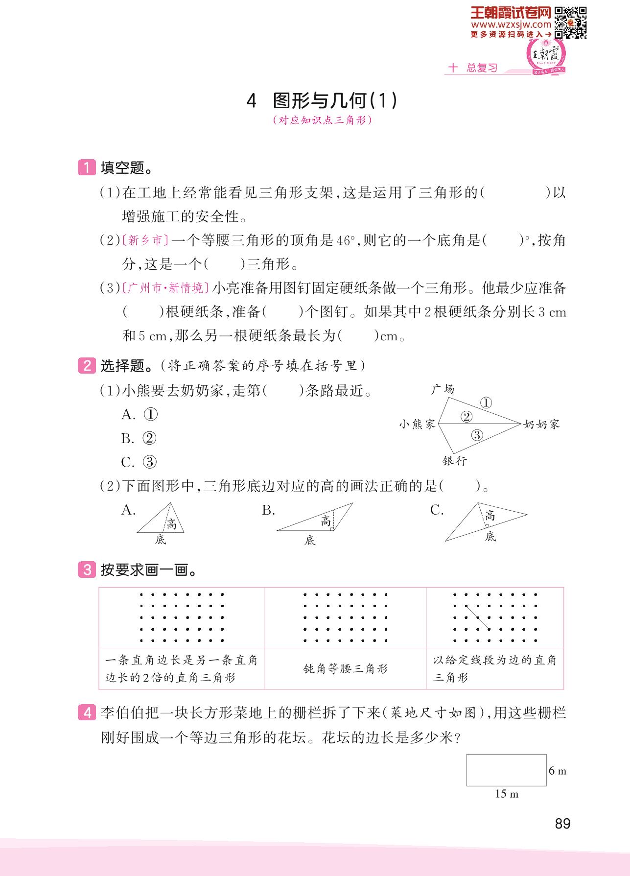 2023下册四年级数学人教版 十 总复习——4 图形与几何(1)