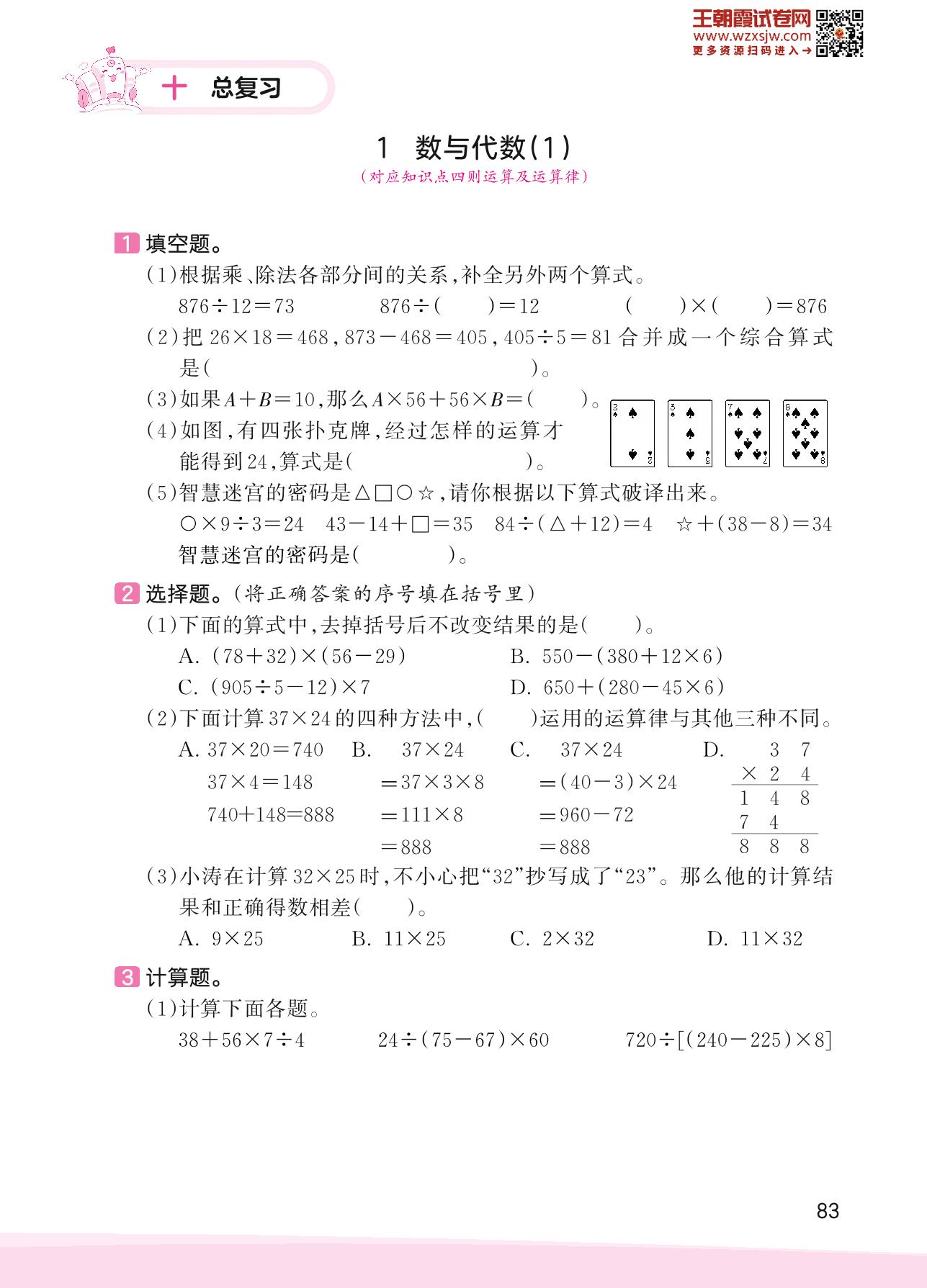 2023下册四年级数学人教版 十 总复习——1 数与代数(1)